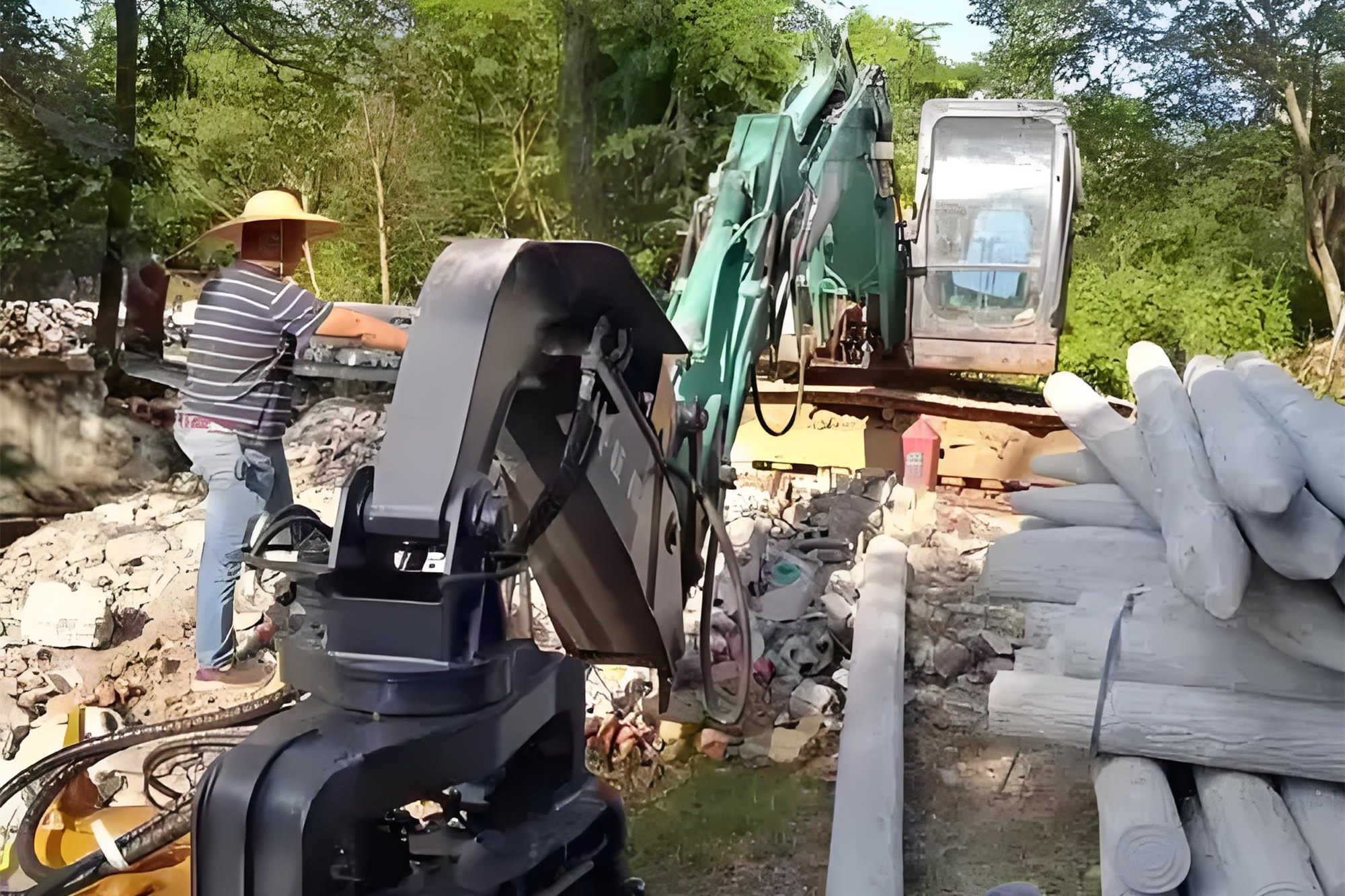 - 松木樁廠家泓樺錦嘉-打松木樁時遇到堅硬土層怎么解決?