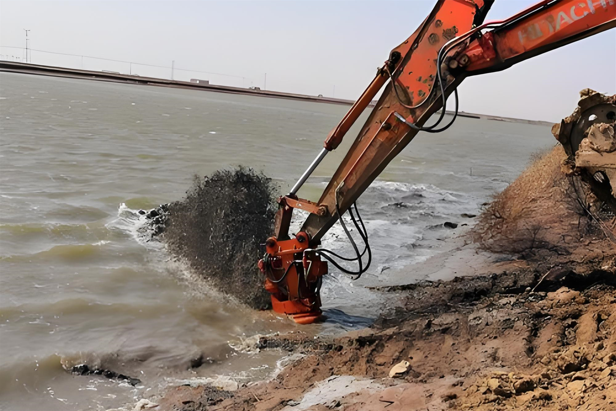 普通河道清淤講究 “快速高效”,挖機直接把淤泥挖到岸邊的渣土車,或者用泥漿泵抽到岸上晾曬,只要控制好不污染周邊水域就行。遇到硬土層,破碎錘敲幾下就能繼續(xù)挖,工藝相對成熟。