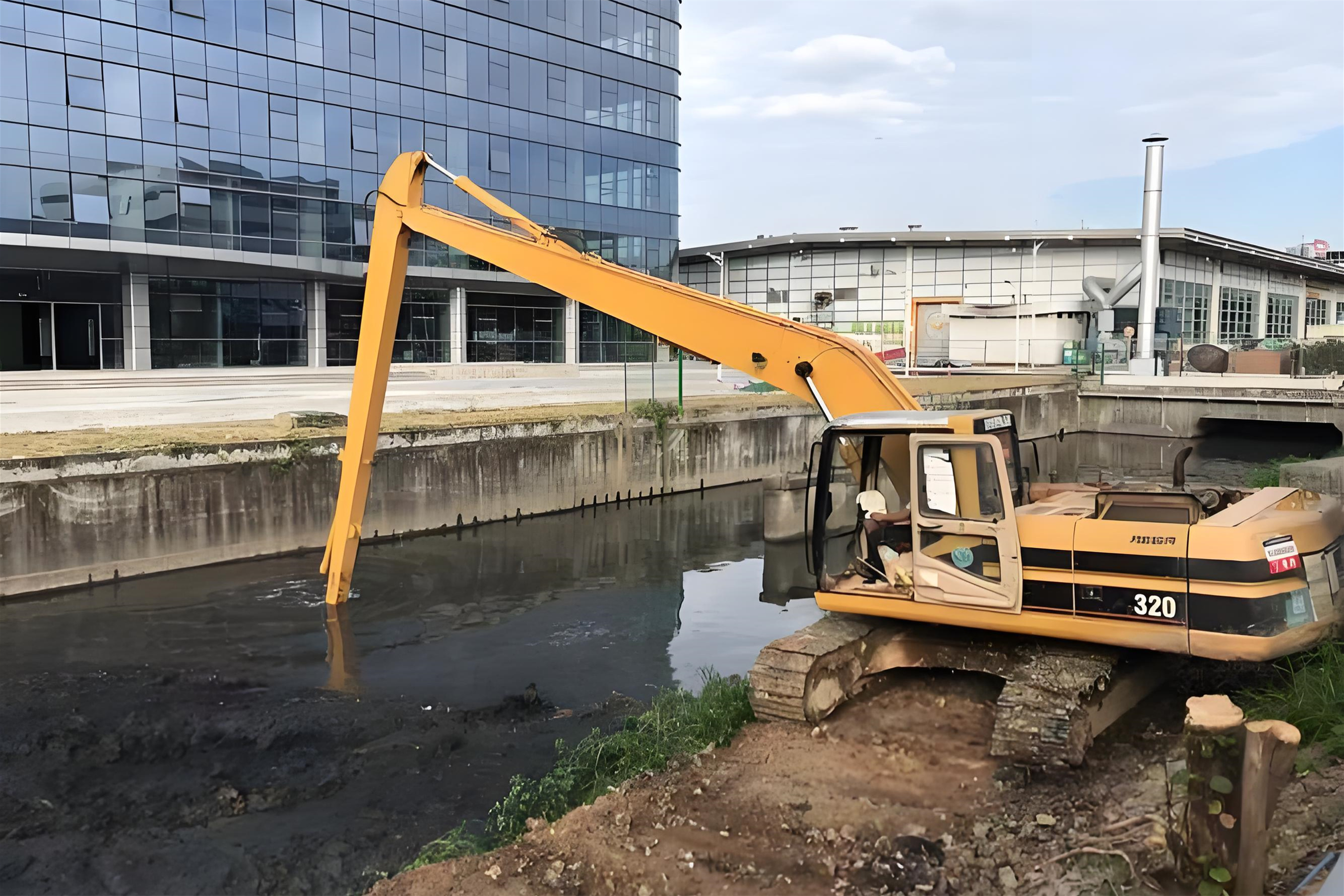 普通河道清淤用常規(guī)的履帶式挖機就行,配上普通挖斗或清淤斗,甚至可以用長臂挖機站在岸邊作業(yè),效率很高。如果水深超過 3 米,加個浮箱改成水上挖機,基本能應對大部分場景。