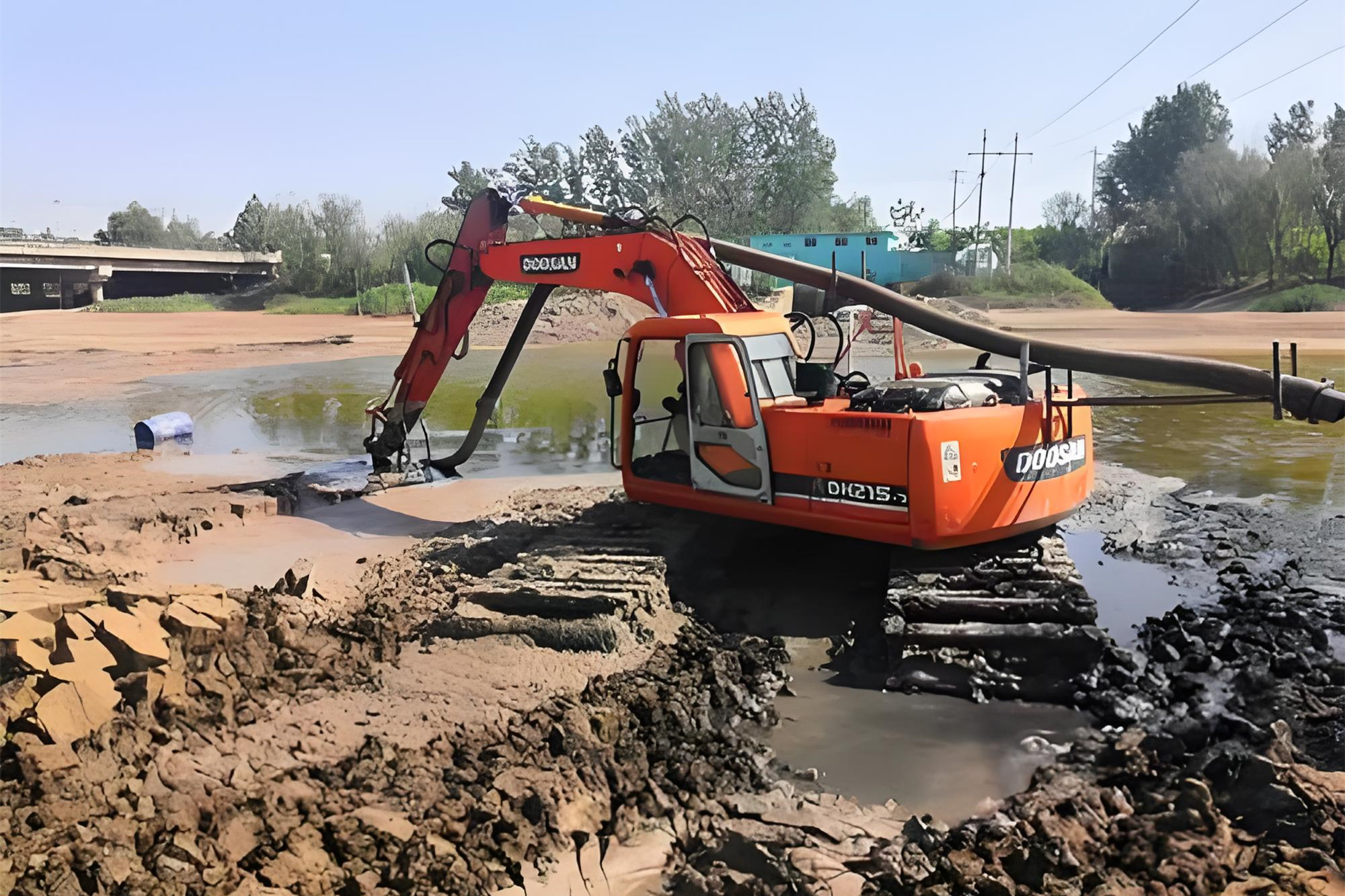 挖機(jī)清淤和普通土方作業(yè)不一樣,作業(yè)場地多是淤泥、積水,甚至還有雜物。比如徐匯區(qū)的一些老舊河道,水底可能藏著石頭、鋼筋,淤泥黏度還特別高,挖機(jī)履帶容易陷進(jìn)去,液壓系統(tǒng)也容易進(jìn)雜質(zhì),這也是故障高發(fā)的重要原因。
